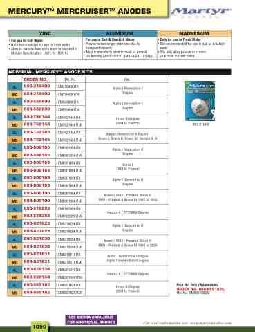 SEE SIERRA CATALOGUE FOR ADDITIONAL ANODES