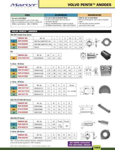 SEE SIERRA CATALOGUE FOR ADDITIONAL ANODES