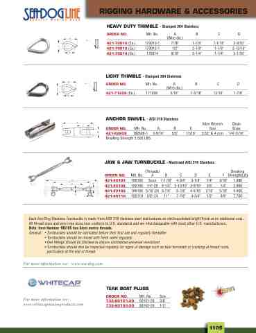 Each Sea-Dog Stainless Turnbuckle is made from AISI 316 stainless steel and features an electropolished bright finish at no additional cost. All thread sizes and wire rope sizes now conform to U.S. standards and are interchangeable with most other U.S. manufacturers. Note: Item Number 185105 has 5mm metric threads. General: • Turnbuckles should be lubricated before their first use and regularly thereafter