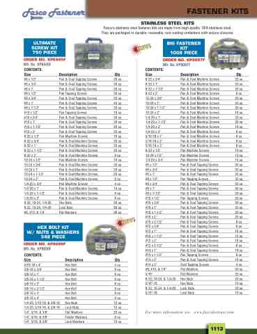 Fasco’s stainless steel fastener kits are made from high-quality 18/8 stainless steel. They are packaged in durable, reuseable, non-rusting containers with secure closures.