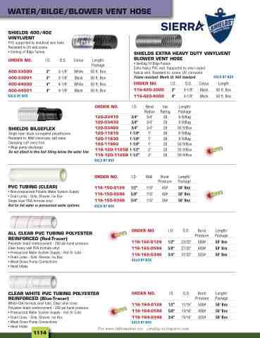 SHIELDS 400/402 VINYLVENT PVC supported by anodized wire helix. Resistant to UV and ozone. • Venting of Bilge Fumes.