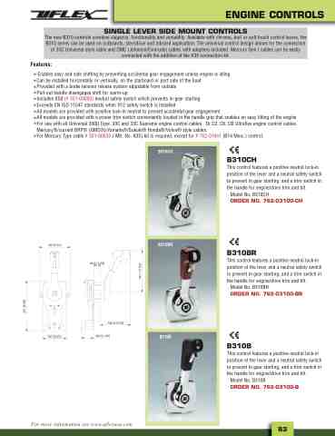•Includes X50 (# 351-00050) neutral safety switch which prevents in-gear starting •Exceeds EN ISO 11547 standards when X12 safety switch is installed •All models are provided with positive lock-in neutral to prevent accidental gear engagement •All models are provided with a power trim switch conveniently located in the handle grip that enables an easy tilting of the engine •For use with all Universal 3300 Type, 33C and 33C Supreme engine control cables. Or C2, C8, CØ Ultraflex engine control cables.