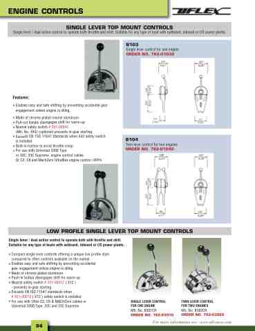SINGLE LEVER CONTROL FOR ONE ENGINE Mfr. No. B301CR ORDER NO. 762-03010