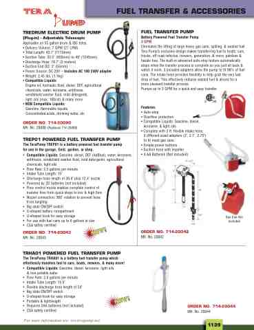 • Auto-stop • Overflow protection • Compatible Liquids: Gasoline, diesel,