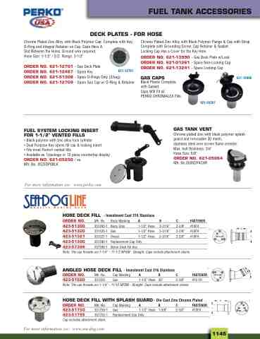 FUEL SYSTEM LOCKING INSERT FOR 1-1/2" VENTED FILLS • Black polymer with zinc alloy lock cylinder • Dual Purpose Key opens fill cap & locking insert • Fits most Perko® vented fills