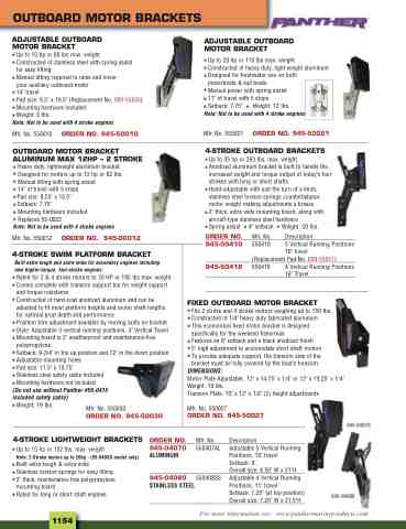 ADJUSTABLE OUTBOARD MOTOR BRACKET •Up to 10 hp or 80 lbs max. weight •Constructed of stainless steel with spring assist