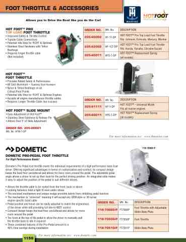 HOT FOOTTM FOOT THROTTLE • Provides Added Safety & Performance • All Cast Aluminum – Stainless Steel Hardware • Nylon & Teflon Bushings on all