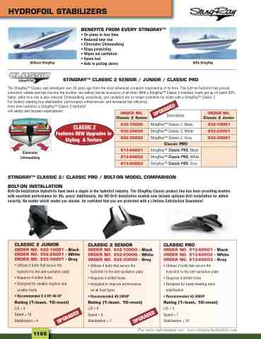 The StingRayTM Classic was developed over 20 years ago from the most advanced computer engineering of its time. This bolt-on hydrofoil has proved extremely reliable and has become the number one selling marine accessory of all-time! With a StingRayTM Classic 2 installed, boats get up on plane 50% faster, while bow rise is also reduced. Chinewalking, porpoising, and cavitation are no longer problems for boats with a StingRayTM Classic 2. For boaters wanting true stabilization, performance enhancement, and increased fuel efficiency