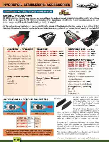 placed on a StingRayTM Classic Senior or Junior, will reduce or completely eliminate dangerous steering torque on all boats. With a StingRayTM Hydrofoil Stabilizer and Torque Equalizers, boats track straight, are easier to control, safer to
