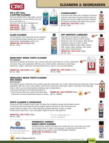& discs. Safe to use on all brake systems including springs, & wedge brakes. • Uses PowerJet® spray nozzle that sprays with force • Powerful formula that uses a potent solvent that cleans ORDER NO. 268-75089PS (822g)