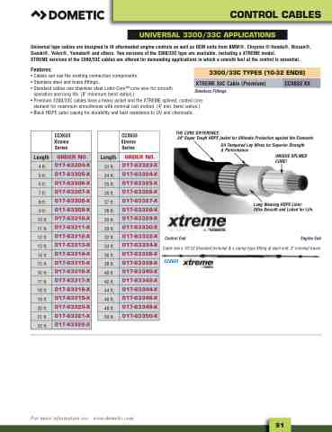 Universal type cables are designed to fit aftermarket engine controls as well as OEM units from BMW®, Chrysler,® Honda®, Nissan®, Suzuki®, Volvo®, Yamaha® and others. Two versions of the 3300/33C type are available, including a XTREME model. XTREME versions of the 3300/33C cables are offered for demanding applications in which a smooth feel at the control is essential.