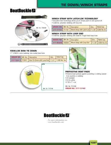 • Protects boat surfaces against scratching or chafing caused from buckles or webbing