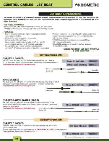 Just for Jets! Two families of jet boat control cables are available, for replacement of Mercury Sport Jet® and OMC Turbo Jet® throttle and reverse-gate cables. Xtreme Versions of the three most popular cables are offered for demanding applications in which a smooth feel at the control is essential.