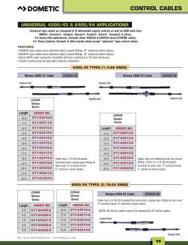 Universal type cables are designed to fit aftermarket engine controls as well as OEM units from BMW®, Chrysler®, Honda®, Nissan®, Suzuki®, Volvo®, Yamaha® & others. For heavy duty applications, Dometic offers 4300/43 & 6400/64 series XTREME cables. For These Controls: Dometic & other brands which accept “universal” type control cables.