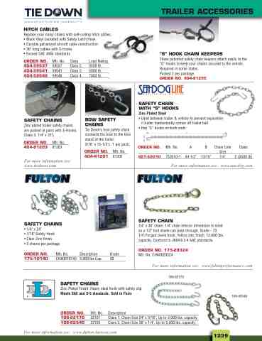 BOW SAFETY CHAINS Tie Down’s bow safety chain connects the boat to the bow stand of the trailer. 3/16" x 15-1/2"L. 1 per pack.