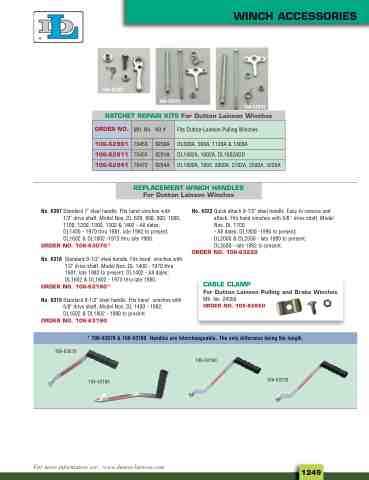 For Dutton Lainson Pulling and Brake Winches. Mfr. No. 24350 ORDER NO. 106-62850