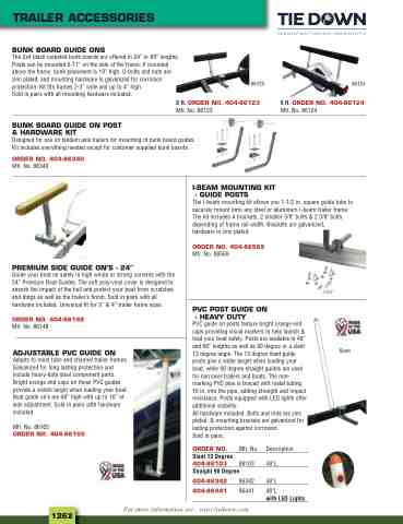 BUNK BOARD GUIDE ON POST & HARDWARE KIT Designed for use on tandem axle trailers for mounting of bunk board guides. Kit includes everything needed except for customer supplied bunk boards.