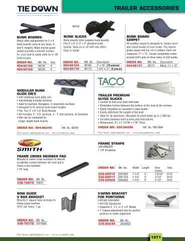 MODULAR BUNK GLIDE ON’S • Self centering bunk glide on’s • Interlocking modular sections • Ideal for painted, fibreglass, or aluminum surfaces • Designed to fit various bunk board lengths • Fits: Two 2" x 6" x 8' Bunk Boards • Kit includes: 4 - 3 ft. sections, 4 - 1" end sections, & hardware • Kits can be combined for