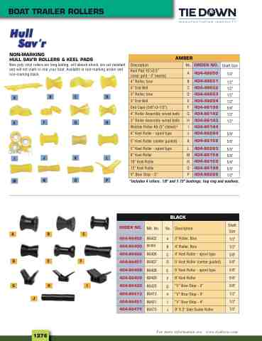 NON-MARKING HULL SAV’R ROLLERS & KEEL PADS New poly vinyl rollers are long lasting, will absorb shock, are cut resistant and will not mark or mar your boat. Available in non-marking amber and non-marking black.
