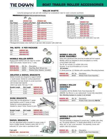 WOBBLE ROLLER BUNK ASSEMBLY Heavy duty galvanized steel pivot bar provides full hull support. Wobble rollers are designed to pivot and adjust to a variety of hull shapes and sizes. The 36" bar includes (2) wobble roller arms. However, it can accommodate up to 4 arms.