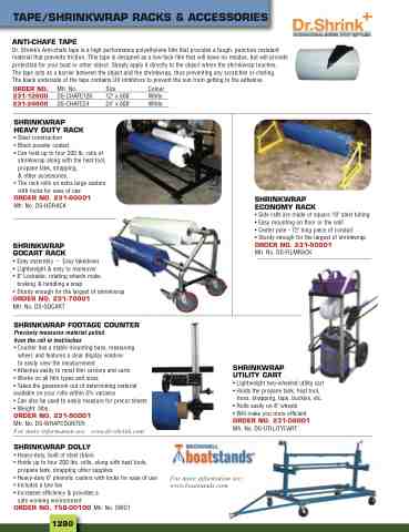 to easily view the measurement • Attaches easily to most film carriers and carts • Works on all film types and sizes • Takes the guesswork out of determining material available on your rolls within 5% variance • Can also be used to easily measure for precut sheets • Weight: 3lbs. ORDER NO. 231-90001 Mfr. No. DS-WRAPCOUNTER For more information see: www.dr-shrink.com