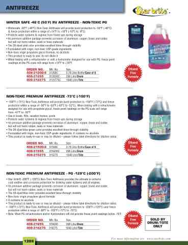 • Protects water systems & engines from freeze ups during storage • Its premium additive package prevents corrosion of aluminum, copper, brass and solder,