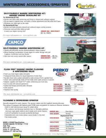 • Quickly and efficiently service inboard/outboard marine engines • Allows flushing & preparation of boat engine for winter storage with just