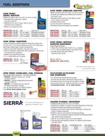 • Makes all engine start more easily, run more smoothly • Prevents fuel oxidation and stabilizes fuel chemistry