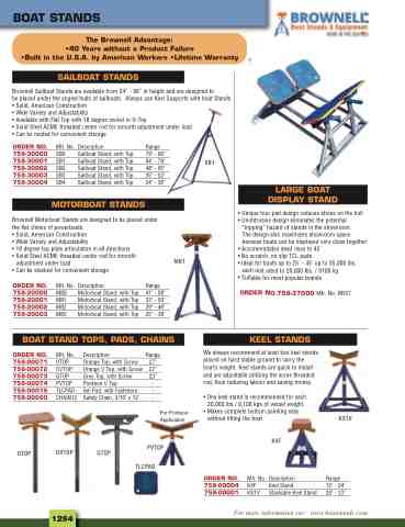 Brownell Motorboat Stands are designed to be placed under the flat chines of powerboats. • Solid, American Construction • Wide Variety and Adjustability