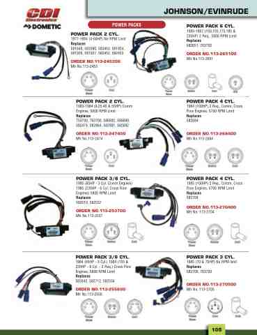 1984 (65HP - 3 Cyl.) 1984 (155 & 235HP - 6 Cyl. - 2 Req.) Cross Flow Engines, 5800 RPM Limit Replaces