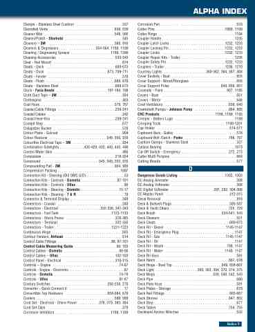 Corrosion Pen . . . . . . . . . . . . . . . Cotter Pins . . . . . . . . . . . . . . . . . . . Cotter Rings . . . . . . . . . . . . . . . . . . Coupler Handle . . . . . . . . . . . . . . . . Coupler Latch Locks . . . . . . . . . . . . CouplerLockingPin........... Coupler Locks . . . . . . . . . . . . . . . . Coupler Repair Kits - Trailer . . . . . . Coupler Safety Pin . . . . . . . . . . . . . Couplers-Trailer...................... Courtesy Lights . . . . . . . . . . . . . . . . . . . . . . .360-362, 364, 367, 368 Cover Sockets - Boat . . . . . . . . . . . . . . . . . . . . . . . . . . . . . . . . . .655 Cover Support - Wood/Fibreglass . . . . . . . . . . . . . . . . . . . . . . . .655 Cover Support Poles . . . . . . . . . . . . . . . . . . . . . . . . . .649, 656, 657 Coveralls - Paint . . . . . . . . . . . . . . . . . . . . . . . . . . . . . . . . .907, 1185 Covers - Boat . . . . . . . . . . . . . . . . . . . . . . . . . . . . . . . . . . . . . . .651 Covers - Motor . . . . . . . . . . . . . . . . . . . . . . . . . . . . . . . . . . . . . .648 Cowl Ventilators . . . . . . . . . . . . . . . . . . . . . . . . . . . . . . . . .638, 640 Crankshaft Pumps - Johnson Pump . . . . . . . . . . . . . . . . . .884, 885 CRC Products . . . . . . . . . . . . . . . . . . . . . . . . . . . . .1188, 1189, 1193 Crimper - Battery Lugs . . . . . . . . . . . . . . . . . . . . . . . . . . . . . . .1199 Crimping Tools . . . . . . . . . . . . . . . . . . . . . . . . . . . . . . . . .1198-1201 Cup Holder . . . . . . . . . . . . . . . . . . . . . . . . . . . . . . . . . . . . . .574-577