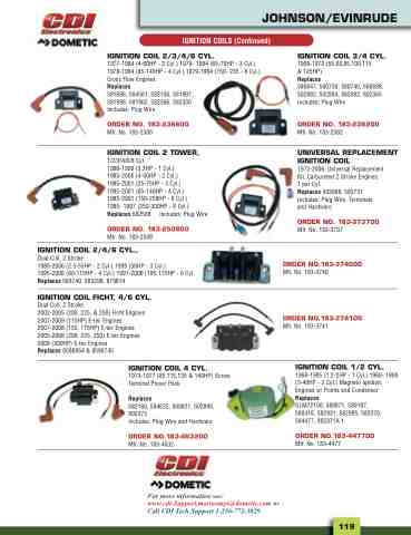 Dual Coil, 2 Stroke 1985-2006 (2.5-55HP - 2 Cyl.) 1995 (50HP - 3 Cyl.) 1995-2006 (80-115HP - 4 Cyl.) 1991-2006 (105-175HP - 6 Cyl Replaces 583740, 583298, 879614