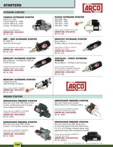 Mercruiser, Volvo Penta, OMC, Marine Power & others. Will replace 9 tooth drive OEM versions 3.0 - 8.1L w/14" flywheel. Anodized casting, nickel plated brush holder. OEM mounting bolts included.