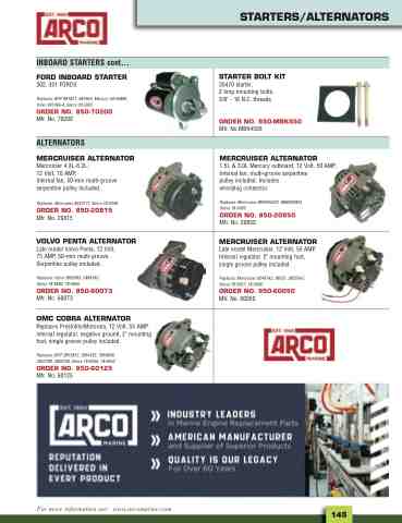 Mercruiser 4.3L-6.2L, 12 Volt, 70 AMP, Internal fan, 50-mm multi-groove serpentine pulley included.