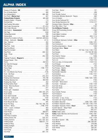 Freeze Off Penetrating Solvent .. .... . Fresh Tank . . . . . . . . . . . . . . . .. .... . Fresh Water Container . . . . . . .. .... . Fresh Water Hoses . . . . . . . . . .. .... . Fridges . . . . . . . . . . . . . . . . . . .. .... . Front Mount Hydraulic Cylinder - Uflex Fuel Additive . . . . . . . . . . . . . ...... . Fuel Connectors . . . . . . . . . . . . . . . . . . . . . . . . . . . . . . . .1123-1133 Fuel Decontaminators - Diesel ...... . . . . . . . . . . . . . . . . . . . .1290 Fuel Drain Valve - Racor . . . . . ...... . . . . . . . . . . . . . . . . . . . . .165 Fuel Filters . . . . . . . . . . . . . . . . . . . . . . .157-164, 1143, 1148, 1149 Fuel Gauges . . . . . . . . . . . . . . . . . . . . . . . . . . . . . .175-190,191-200 Fuel Hose . . . . . . . . . . . . . . . . . . . . . . . . . . . . . . . . . . . . .1122-1132 Fuel Injector Cleaner . . . . . . . . ...... . . . . . . . . . . . . . . . . . . . .1290 Fuel Level Senders . . . . . . . . . ...... . . . . . . . . . . . . . . .1140, 1141 Fuel Line . . . . . . . . . . . . . . . . . . . . . . . . . . . . . . . . . . . . . .1123-1132 Fuel Line Assy. & Components . . . . . . . . . . . . . . . . . . . .1123-1132 Fuel Pickups . . . . . . . . . . . . .. ...... . . . . . . . . . . . . . . . . . . . .1142 Fuel Polishing Cart - Racor .. ...... . . . . . . . . . . . . . . . . . . . . .164 Fuel Pumps - Electric . . . . . .. ...... . . . . . . . . . . . . . . . . .153, 154 Fuel Pumps - Sierra . . . . . . . . . . . . . . . . . . . . . . . . . . . . . . .152-154