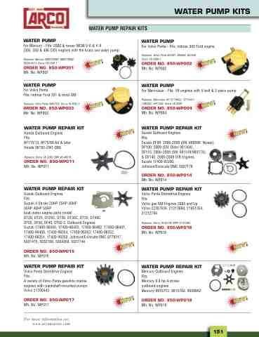 Replaces: Volvo Penta 857451, 856952, 841640, Sierra 18-3586-1 ORDER NO. 850-WP002 Mfr. No. WP002