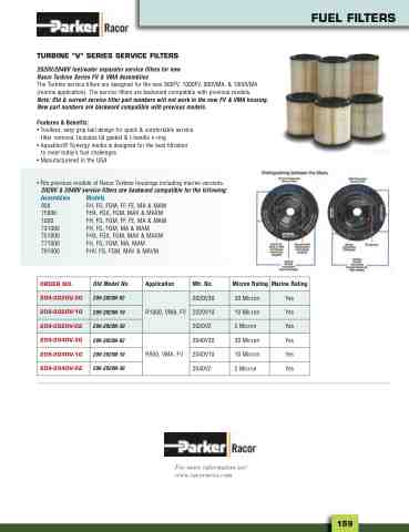 2020V/2040V fuel/water separator service filters for new Racor Turbine Series FV & VMA Assemblies The Turbine service filters are designed for the new 900FV, 1000FV, 900VMA, & 1000VMA (marine application). The service filters are backward compatible with previous models. Note: Old & current service filter part numbers will not work in the new FV & VMA housing. New part numbers are backward compatible with previous models.