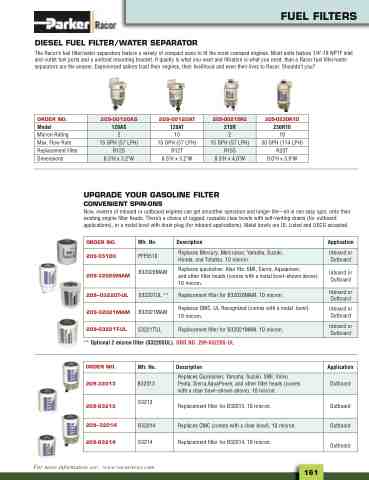 The Racor’s fuel filter/water separators feature a variety of compact sizes to fit the most cramped engines. Most units feature 1/4"-18 NPTF inlet and outlet fuel ports and a unitized mounting bracket. If quality is what you want and filtration is what you need, than a Racor fuel filter/water separators are the answer. Experienced sailors trust their engines, their livelihood and even their lives to Racor. Shouldn’t you?