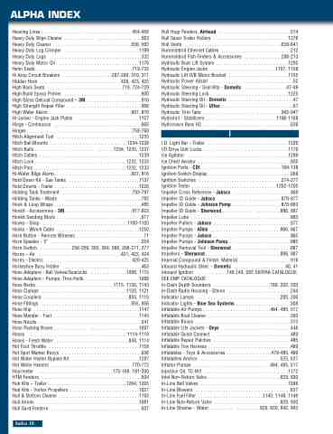 I.D. Light Bar - Trailer . ......... ..... . I/O Drive Unit Locks . ................ Ice Agitator . . . . . . . . .......... ..... . Ice Chest Aerator . . . . .......... ..... . Ignition Parts - CDI . . . . . . . . . . . . . . . . . . . . . . . . . . . . . . . .104-138 Ignition Switch Display . . . . . . . . . . ..... . .. . .. . . . . . . . . . . . .269 Ignition Switches . . . . . . . . . . . . . . . . . . . . . . . . . . . . . . . . .274-277 Ignition Tester . . . . . . . . . . . . . . . . . . . . . . . . . . . . . . . . . .1202-1205 Impeller Cross Reference - Jabsco ..... . .. . .. . . . . . . . . . . . .869 ImpellerIDGuide-Jabsco............ ... . . . . . . . . . .870-877 ImpellerIDGuide-JohnsonPump........... . . . . . . . . .878-883