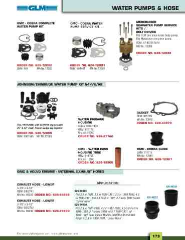 MERCRUISER SEAWATER PUMP SERVICE KITS / BELT DRIVEN Fits GLM one piece brass body pump. Fits Mercruiser one piece pump.