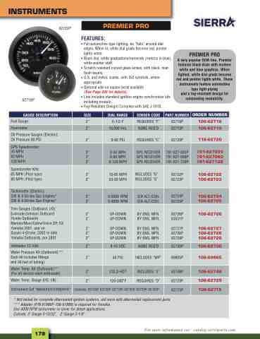 PREMIER PRO A very popular OEM line, Premier features black dials with modern white and blue graphics. When lighted, white dial grads become red and pointer lights white. These instruments feature automotive type light-piping and a fog-resistant design for outstanding readability.