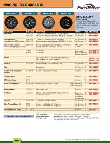 12 volt, negative ground, internally illuminated unless otherwise noted. American requires standard American or standard Faria sending unit. 4” tachometers, speedometers, synchronizers, & compasses - Hole Size: 3.375” / 85mm. All 2” instruments - Hole Size: 2.0625” /53mm.