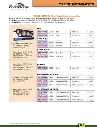 Packaged and ready for the display counter. These Boxed Sets offer a complete set of gauges ready to install. The INBOARD SET comes with Speedometer & Pitot, Tachometer, Fuel, Voltmeter, Water Temp, & Oil Pressure. The OUTBOARD SET comes complete with Speedometer & Pitot, Tachometer, Fuel, & Voltmeter.