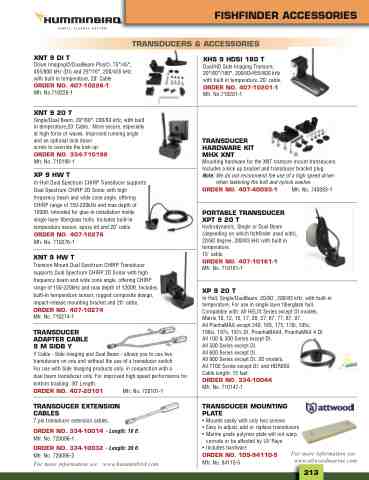 Single/Dual Beam, 20°/60°, 200/83 kHz, with built in temperature,20' Cable. More secure, especially at high force of waves. Improved running angle and an optional lock down