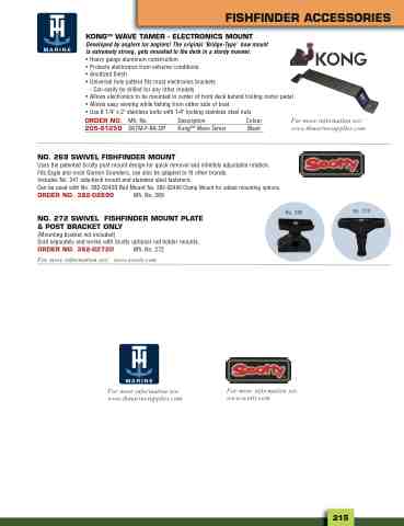 NO. 272 SWIVEL FISHFINDER MOUNT PLATE & POST BRACKET ONLY (Mounting bracket not included) Sold separately and works with Scotty optional rod holder mounts. ORDER NO. 382-02720 Mfr. No. 272