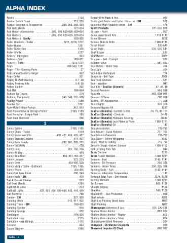 Rivets . . . . . . . . . . . . . . . . . . . . . . . . . . . . . . . . . . . . . . . . . . . . .1109 Rocker Switch Panel . . . . . . . . . . . . . . . . . . . . . . . . . . . . . .312, 315 Rocker Switches & Accessories . . . . . . . . . . . . .259, 260, 268, 269 Rod Hold-Down . . . . . . . . . . . . . . . . . . . . . . . . . . . . . . . . . .629-634 Rod Holder Accessories . . . . . . . . . . . .609, 610, 620-626, 629-634 Rod Holders . . . . . . . . . . . . . . . . . . . . .609, 610, 620-625, 629-634 Rod Holders - Scotty . . ......... ....... . . . . . . . . . . . .620-626