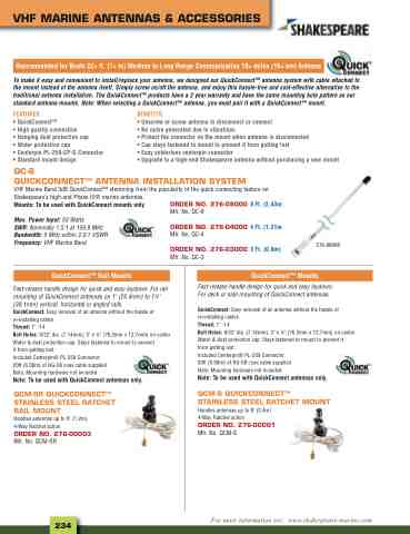 VHF Marine Band 3dB QuickConnectTM stemming from the popularity of the quick connecting feature on Shakespeare’s high-end Phase III® marine antennas.