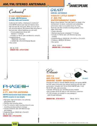 installed. • Suggested Mount: ORDER NO. 276-41870 or 276-51870 • Frequency: AM/FM & FM-Stereo • One section