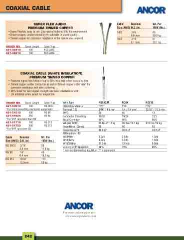 • Features signal loss ratios of up to 50% less than other coaxial cables • Tinned copper center conductor as well as tinned copper outer braid for