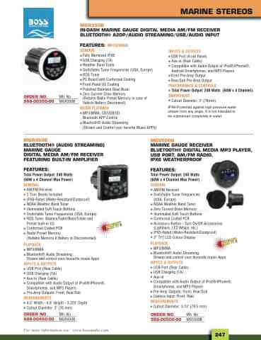 FEATURES: MR762BRGB GENERAL • Fully Marinized IPX6 • USB Charging (1A)